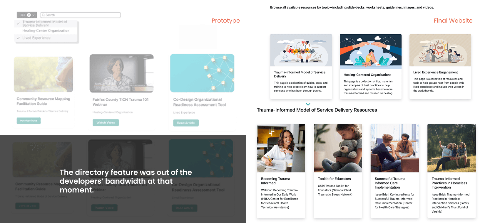 I initially envisioned creating a directory to store 50+ resources all in one place. However, due to the developer team’s limited bandwidth, it wasn’t feasible within the project timeline.